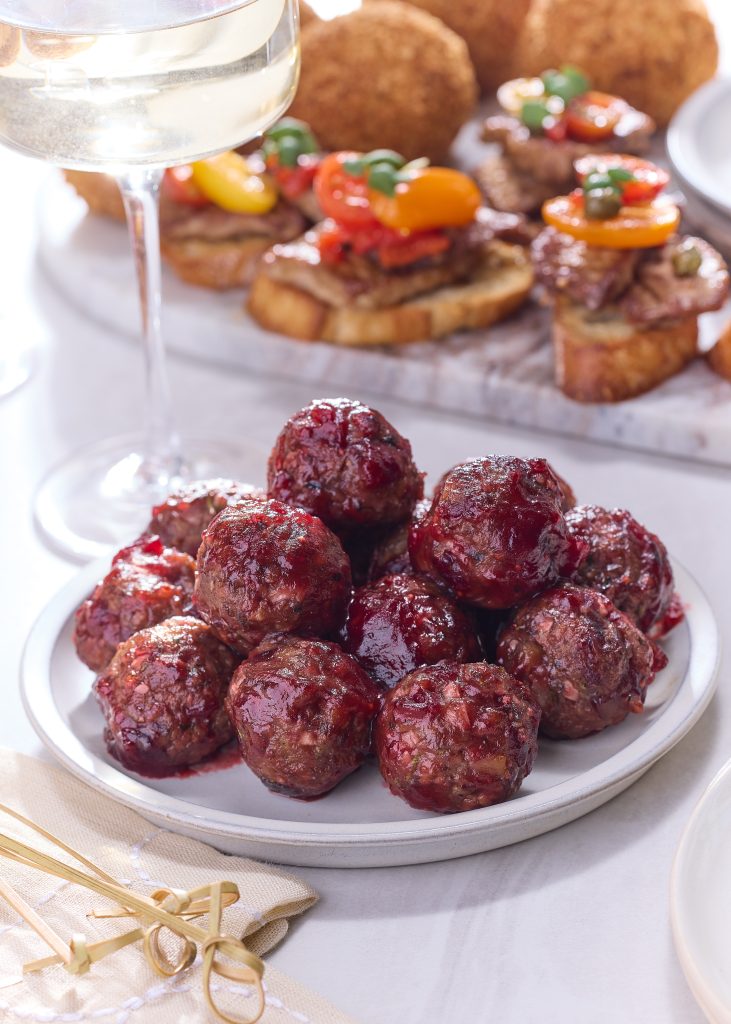 Variation: Sweet and Sour Meatballs: Omit salt, cranberry juice and dried cranberries. Substitute cider vinegar for the red wine vinegar; add 2 cans (14 oz/398 mL) pineapple tidbits in juice and 2 tbsp (30 mL) each soy sauce and tomato paste with the vinegar. Add 1 diced green pepper with meatballs, if desired.